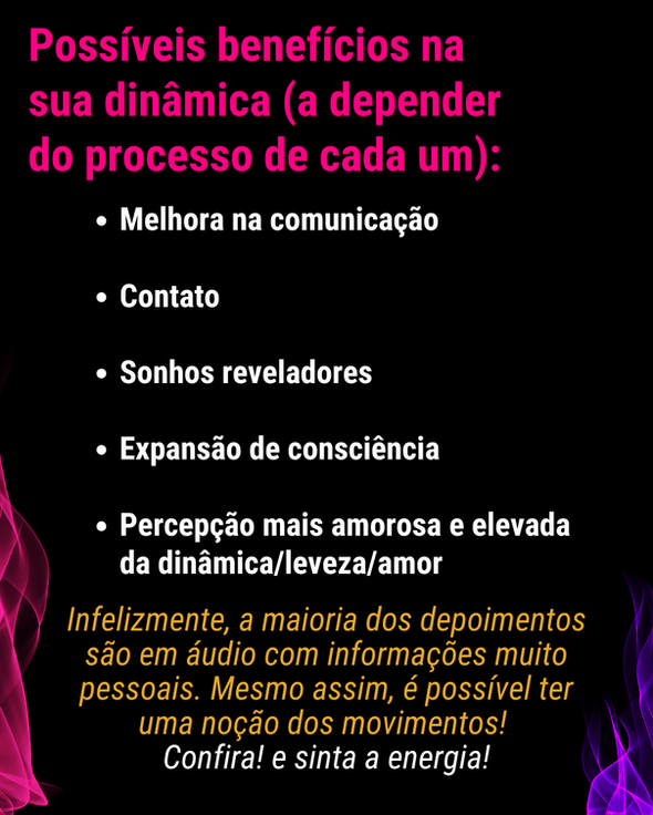 - Percepção mais amorosa e elevada da dinâmica/leveza/amor.